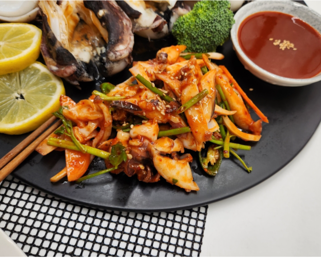 2. 갑오징어 숙회: 신선한 갑오징어를 삶아서 먹는 요리로, 두께에 따라 얇게 썰어서 고추장이나 고추냉이 등의 양념과 함께 소스로 찍어 먹습니다. 새콤한 맛과 씹는 재미를 즐길 수 있습니다.