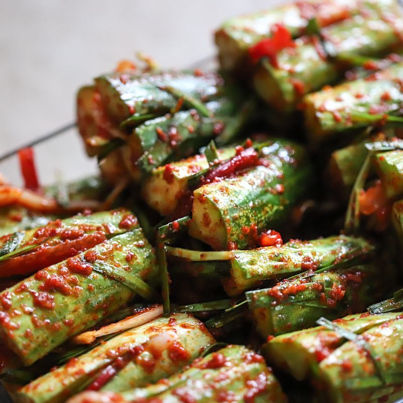 오이소박이: 오이를 소금물에 절여서 발효시킨 조미료로, 오이 껍질을 벗겨 남은 씨앗 부분을 사용합니다. 소금물에 절여서 한참 동안 발효시킨 후 다양한 음식에 간장 대용으로 사용됩니다.